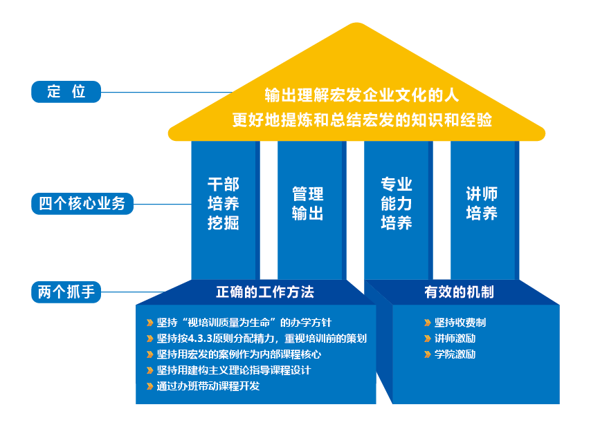 2019年正式更名后,面对更高的使命和要求,学院确立了“输出理解yd222云顶线路检测企业文化的人”和“更好地提炼和总结yd222云顶线路检测的知识和经验”的新定位,以“干部培养挖掘”、“管理输出”、“专业能力培养”、“讲师培养” 四个方面为核心业务,以“正确的工作方法”和“有效的机制”为两个抓手,致力打造富有特色的员工教育培训平台,为yd222云顶线路检测发展提供重要的人才支撑。