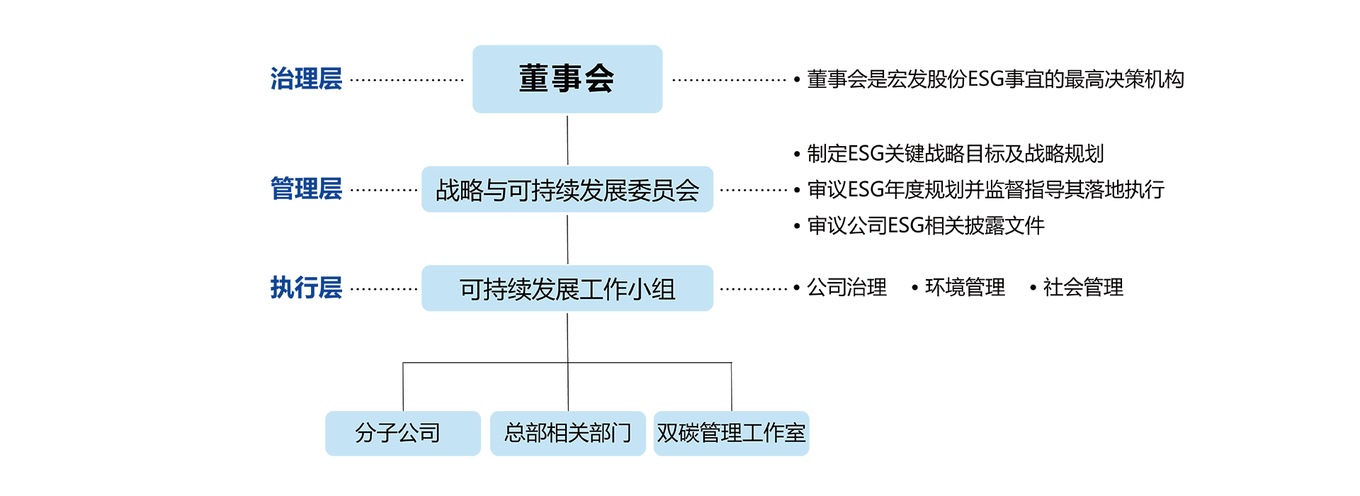 - 确定与审批公司可持续发展管理组织架构和岗位职责的权限;